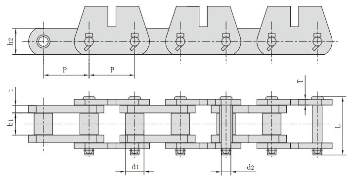 P152F24,帶附板輸送鏈,工程鏈條廠家,鏈條規格參數