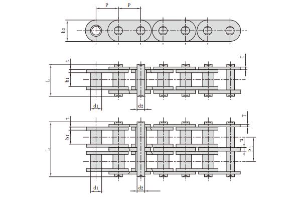 汽車發(fā)動機正時套筒鏈主要型號有:節(jié)距,套筒直徑,內(nèi)節(jié)內(nèi)寬,銷軸直徑,銷軸長度,內(nèi)鏈板高度,鏈板厚度,排距,抗拉強度,每米長重
