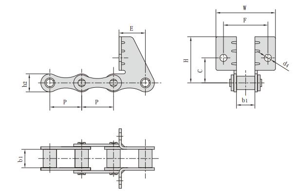 主要規(guī)格型號有:ZGS38F47(節(jié)距38mm,滾子直徑16.0mm,內(nèi)節(jié)內(nèi)寬22.00mm,橡膠附板尺寸W480.0mm,L360.0mm,H77.0mm,F52.0mm,Tr8.0mm)